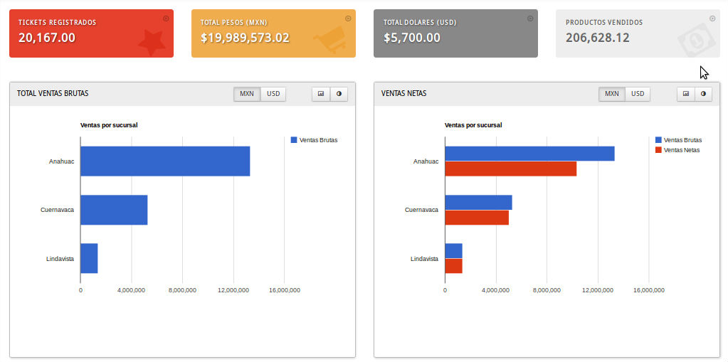 SferaPOS te permite visualizar en tiempo real las Ventas Netas y las Ventas Brutas que se han